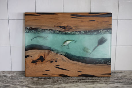 The items in the Resin Wood Collection showcase the natural beauty of various wood species blended seamlessly with the depth and character of epoxy. From table art to river-style tables to durable cutting boards & home accents; every item is made with precision and artistic care. No two pieces are ever alike—each displaying its own unique grain patterns, color variations and natural blemishes that highlight the authenticity of real wood. Whether you’re looking for a functional kitchen essential or a statement piece for your home, our epoxy-and-wood creations are built to be both visually striking and made to last.